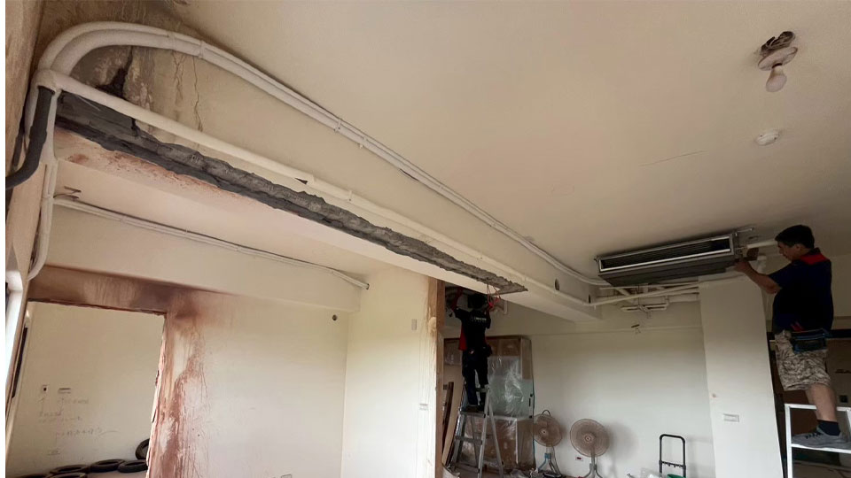 本案位於桃園市大園區科一路,業主因空間使用需求,希望兼顧舒適冷氣與穩定除濕功能。施工團隊規劃吊隱式冷氣系統,主機隱藏於天花板,搭配專業管線配置與出風口設計,不僅保持室內美觀,更確保氣流分布均勻。另加裝獨立除濕系統,讓空間在梅雨季或潮濕環境下仍能維持乾爽,達到節能與舒適雙效。整體工程依照既有建築結構量身調整,施工期如期完成,深獲業主肯定。